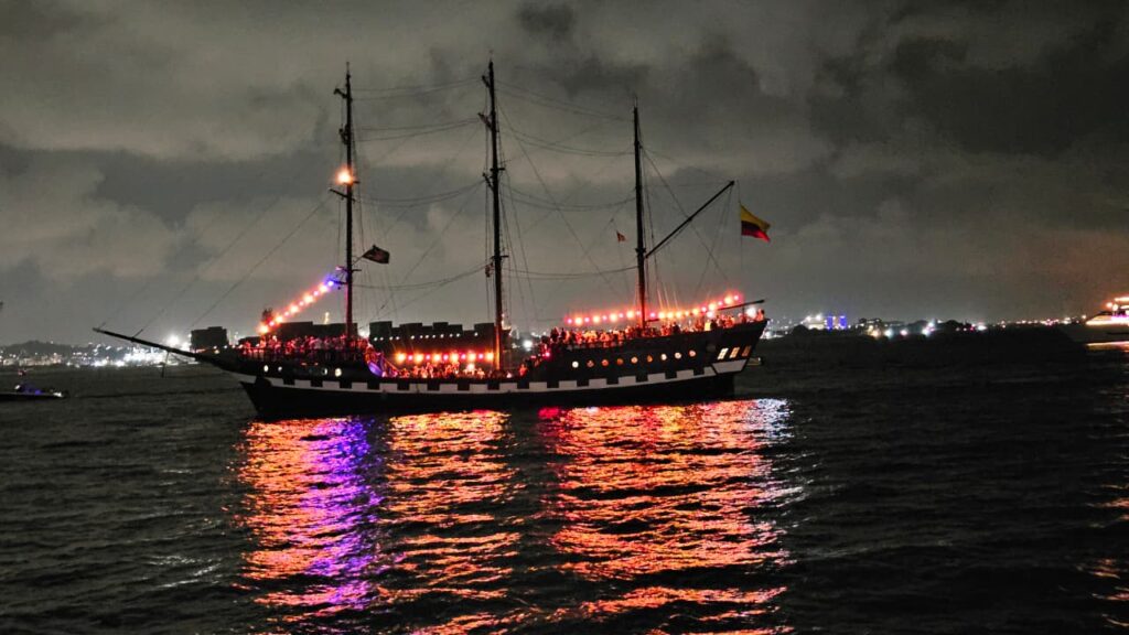 Disfrutando de un hermoso atardecer y el magestuoso esplendor de la noche de estrellas acompañado de las luces de Cartagena de Indias y de nuestro poderoso barco, el paseo incluye 3 bebidas alcohólicas de cortesía, las bebidas gaseosa y el agua son gratis.